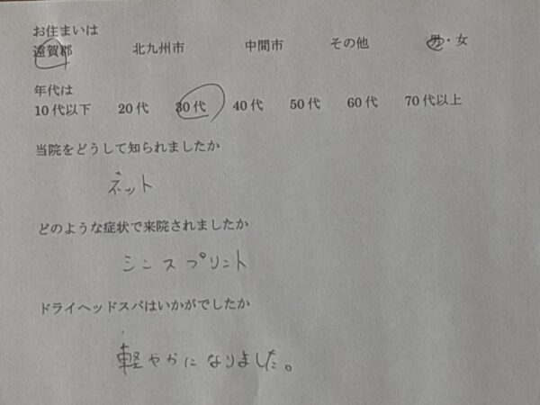 整体施術と同時にドライヘッドスパも受けてもらい、(頭も体も)軽やかになりましたと体験談を残していただきました。