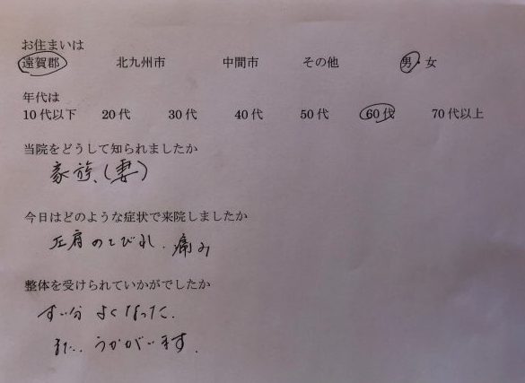 この方は頸椎のずれから左肩のしびれや痛みが生じていたようでした。