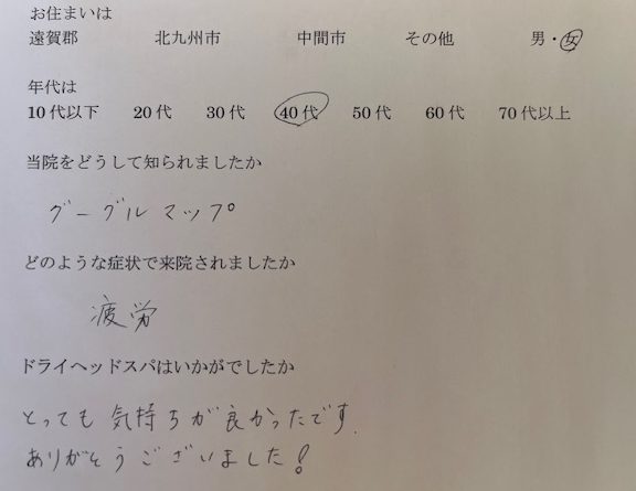 とても気持ちが良かったです! 2025/10/24 Googleマップを見て知りました。 疲労感があり来院しました。 ドライヘッドスパを受けてとても気持ち良かったです。 ありがとうございました! 40代女性より